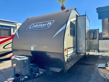 2018 Coleman 3025RE 34ft travel trailer with 3 slide outs good tires large awning ducted A/C and heat refrigerator and freezer microwave stove oven large bathroom with glass shower walk around queen bedroom sleeps 8 lots of cabinet and closet space non smoker no pets in excellent condition in and out clean title